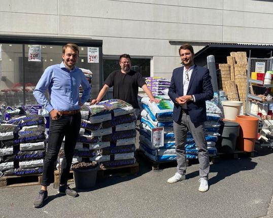 Philip Krämer (Direktkandidat für den Bundestag, Bündnis 90/Die GRÜNEN), Riccardo Westphal (Westphal Profi-Baufachmarkt) und Sven Rohde (Hauptgeschäftsführer Handelsverband Hessen e. V.)