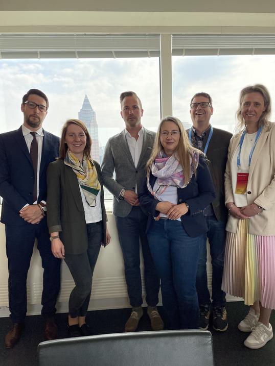 (v.l.n.r. Sven Rohde (Hauptgeschäftsführer des Handelsverbandes Hessen e. V.), Julia Uherek (Leiterin des Bereichs Konsumgüter bei der Messe Frankfurt), Philipp Ferger (Leiter des Bereichs für Konsumgüter bei der Messe Frankfurt), Susanne Schlimgen (Objektleitung bei der Messe Frankfurt), Jochen Ruths (Präsident des Handelsverbandes Hessen e. V.), Tatjana Steinbrenner (Vizepräsidentin des Handelsverbandes Hessen e. V.)