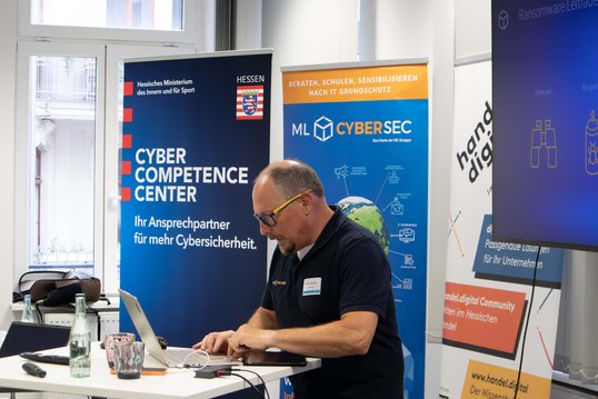 In den Vorträgen gab ein Referent des Hessen3C einen Überblick über die aktuelle Sicherheitslage im Handel und Roland Schreckenberg von der ML Cybersec zeigte in seinem Vortrag, wie man sich vor IT-Angriffen am besten schützt.