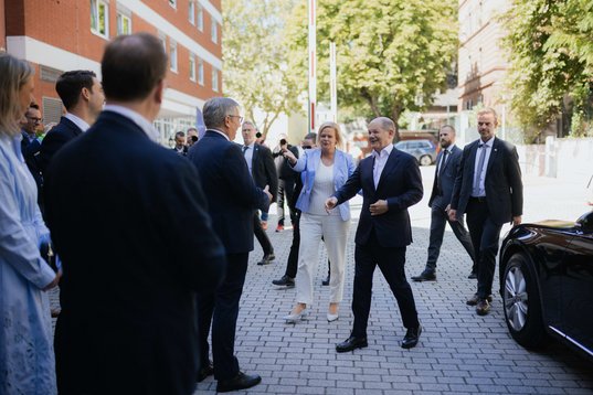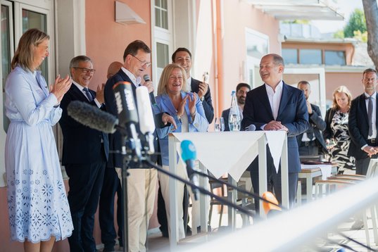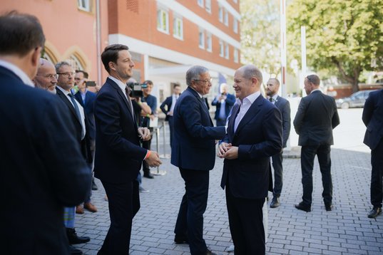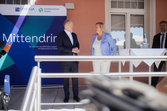 Bundeskanzler Olaf Scholz und Bundesinnenministerin Nancy Faeser im Austausch mit dem hessischen Handel und Gastgewerbe